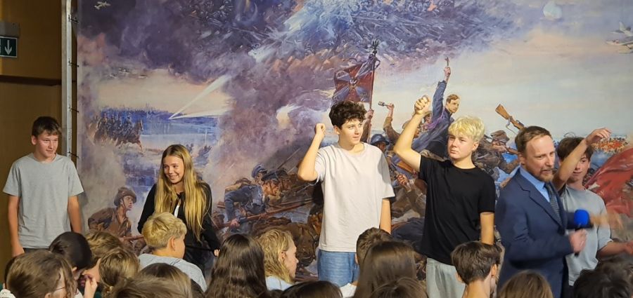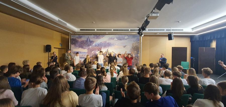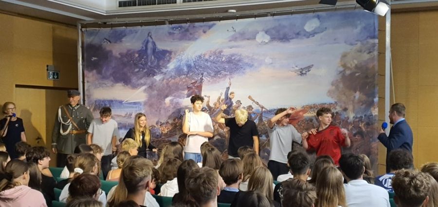 "WIZYTA MARSZAŁKA" - to widowisko artystyczne, które będzie spotkaniem młodzieży z dziełem malarskim - batalistycznych obrazem "Bitwa Warszawska czyli Cud nad Wisłą" Jerzego Kossaka.