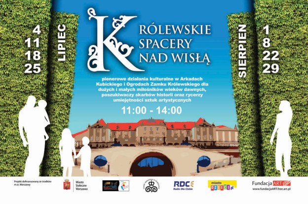 Królewskie Spacery nad Wisłą - to plenerowe działania kulturalne w Arkadach Kubickiego i Ogrodach Zamku Królewskiego dla dużych i małych miłośników wieków dawnych, poszukiwaczy skarbów historii i rycerzy umiejętności sztuk artystycznych.