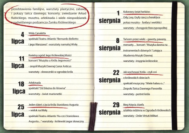 - 25 LIPCA - od godziny 11:00-14:00 zapraszamy na kolejną familijną, sobotnią wycieczkę nad Wisłę przy Zamku Królewskim tym razem spotkanie pt. Jeden dzień życia króla Stanisława Augusta – zabawa pantomimiczna dla wszystkich.